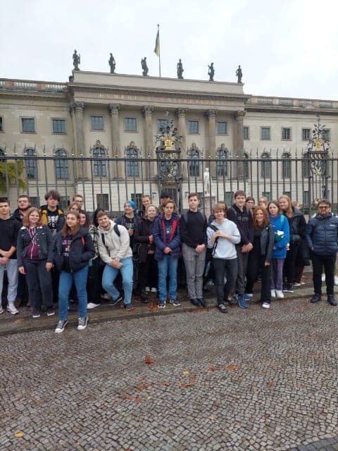 W sobotę 22 października br. odbyła się szkolna wycieczka do Berlina, zorganizowana dla uczniów naszej szkoły przez Pana Andrzeja Behana. Głównym celem wyprawy było zwiedzanie Muzeum Pergamonu, w którym zobaczyliśmy babilońską bramę Isztar wraz z Wielką Drogą Królewską a także inne cenne pamiątki pochodzące ze starożytnej Mezopotamii. Ogromne wrażenie zrobiły na nas autentyczne fragmenty architektury greckiej w postaci kolumn i portali oraz fragmenty ołtarza pergamońskiego. Druga część muzeum dotyczyła sztuki arabskiej. Ponadto w trakcie spaceru po mieście zobaczyliśmy gmach Reichstagu, Muzeum Ofiar Żydowskich oraz wykonana przez pochodzącego z Kamiennej Góry Carla Gotharda Langhausa Bramę Brandenburską. Na trasie zwiedzania był najpiękniejszy w Berlinie hotel Adlon oraz obiekty wzniesione przez Carla Fryderyka Schinkla, czyli główny gmach berlińskiego Uniwersytetu Humbolta oraz tzw. Nowy Odwach. Zobaczyliśmy też dawną granicę między dwoma Berlinami na dawnym przejściu granicznym Check Point Charlie. Czas dla siebie mieliśmy na Alexanderplatz, gdzie znajduje się słynna wieża telewizyjna oraz centrum handlowe. Mimo pewnych trudności z wyjazdem z miasta (protesty Irańczyków) wróciliśmy zmęczeni, ale zadowoleni. Dziękujemy Panu Behanowi oraz pomagającym mu w opiece nad nami Panu Rafałowi Gałczyńskiemu a także Państwu Beacie i Janowi Pajorom. |