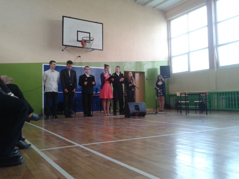 Dzień Edukacji Narodowej to święto nie tylko nauczycieli, ale całej społeczności szkolnej. To dzień wyjątkowy, kiedy porzucamy wszystkie spory pomiędzy gronem pedagogicznym a uczniami i składamy życzenia wytrwałości i cierpliwości do dalszej, nie zawsze łatwej pracy. Aby uczcić ten dzień klasy 2a i 1e wraz wychowawczyniami – p. mgr Izabelą Zynkowską i p. mgr Renatą Sinicką przygotowały krótki apel w formie „Koncertu życzeń”. Odbył się on w piątek, 12. października. Poszczególne klasy zebrały się w dwóch turach na sali gimnastycznej. Pierwszym punktem programu było przekazanie władzy Samorządu Uczniowskiemu, w skład którego weszli: przewodniczący – Bogdan Grzebieniowski, zastępca – Marta Miś, skarbnik – Krystian Kapusta. W wyborach wyłoniono również szkolnego Rzecznika Praw Ucznia, którym został mgr inż. Robert Zynkowski. Nowo wybrany przewodniczący wygłosił krótką, aczkolwiek treściwą przemowę. Następnie nasi Konferansjerzy - Magdalena Tyszka i Mateusz Bisikiewicz zaprosili na część artystyczną. Marta Miś i Pamela Kocel przy akompaniamencie Kacpra Kołacza i Maćka Michałowskiego zaprezentowały się wokalnie, a Daria Borek i Sebastian Buczakowski zachwycili wszystkich swoim tańcem. Myślę, że miło spędziliśmy ten czas, wsłuchując się w dźwięki muzyki, która przecież łagodzi obyczaje. Mogliśmy zaprezentować się z tej lepszej strony, pokazać swoje pasje, których nie ujawniamy na co dzień w szkole. Może teraz Grono Pedagogiczne spojrzy na nas łaskawszym okiem. Malwina Sikora