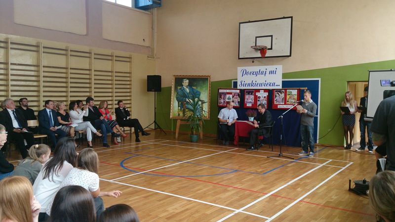 Z inicjatywy Prezydenta RP w tym roku, 6 września, odbyło się Narodowe Czytanie ponadczasowego dzieła Sienkiewicza. Noworudzkie liceum, którego patronem jest ten słynny pisarz, wzięło udział w akcji, organizując dwa spotkania z prozą Sienkiewicza. Pierwsze odbyło się 05 września i miało charakter imprezy zamkniętej- poszczególne lekcje w tym dniu rozpoczynały się odczytaniem wybranych fragmentów „Trylogii”. Drugiemu spotkaniu nadano wydźwięk bardziej uroczysty. 16 września w murach LO powtórnie wybrzmiały słynne frazy: „Kończ waść, wstydu oszczędź” czy „Waćpanna będziesz mnie na sznurku wodzić”, tym razem odczytywane przez zaproszonych gości. W uroczystej akademii, której motto brzmiało: „Poczytaj mi Sienkiewicza…” wzięli udział przedstawiciele Parlamentu oraz władz lokalnych. Pani Poseł na Sejm Rzeczypospolitej Polskiej Monika Wielichowska wcielając się w rolę Oleńki Billewiczówny, z gracją i wrodzonym wdziękiem odpierała afekty Kmicica, którego partie odczytywał Burmistrz, pan Tomasz Kiliński. W kolejnej scence dialogowej swych sił mogli spróbować- w roli czupurnego i zadziornego hajduczka, Basi Jeziorkowskiej- Wiceprzewodnicząca Rady Powiatu Kłodzkiego pani Małgorzata Jędrzejewska- Skrzypczyk i towarzyszący jej Przewodniczący Rady Miasta pan Andrzej Behan wiernie oddający rubaszny humor Onufrego Zagłoby. Pojedynek, na szczęście tylko na słowa, pomiędzy małym rycerzem a Kmicicem po mistrzowsku oddali Starosta Kłodzki Maciej Awiżeń (Michał Wołodyjowski) i anglista z LO pan Witold Bojczuk. We wspólnym czytaniu udział wzięli także nauczyciele i uczniowie placówki. Publiczność z zapartym tchem i atencją wsłuchiwała się w odczytywane, a nawet odgrywane fragmenty prozy, które wyszły spod pióra patrona szkoły. Cała uroczystość została zarejestrowana przez reporterów z Telewizji Sudeckiej. Przed rozpoczęciem spotkania zaproszeni goście oraz dyrekcja szkoły udzielili wywiadów dziennikarzom. Uroczystość Narodowego Czytania „Trylogii” wzbogaciły występy artystyczne- uczniowie należący do Zespołu Pieśni i Tańca Nowa Ruda odtańczyli tańce narodowe: poloneza i mazura, a wokalnie uzdolnieni zaśpiewali „Dumkę na dwa serca”. Akademię zamykało wspólne wykonanie „Pieśni o małym rycerzu”. Celem akcji Narodowego Czytania jest popularyzacja czytelnictwa, zwrócenie uwagi na bogactwo polskiej literatury, potrzebę dbałości o polszczyznę oraz wzmocnienie poczucia wspólnej tożsamości. Środowe spotkanie z prozą Sienkiewicza, zorganizowane w Liceum Ogólnokształcącym, które swą obecnością uświetnili szacowni goście pokazuje, że noworudzki ogólniak jest szkołą otwartą na zewnętrzne inicjatywy. Udowadnia również, że proces edukacyjny może odbywać się w sposób niekonwencjonalny. Na kolejne takie nieszablonowe lekcje zapraszamy w marcu, kiedy to w LO odbędzie się Dzień Otwarty.