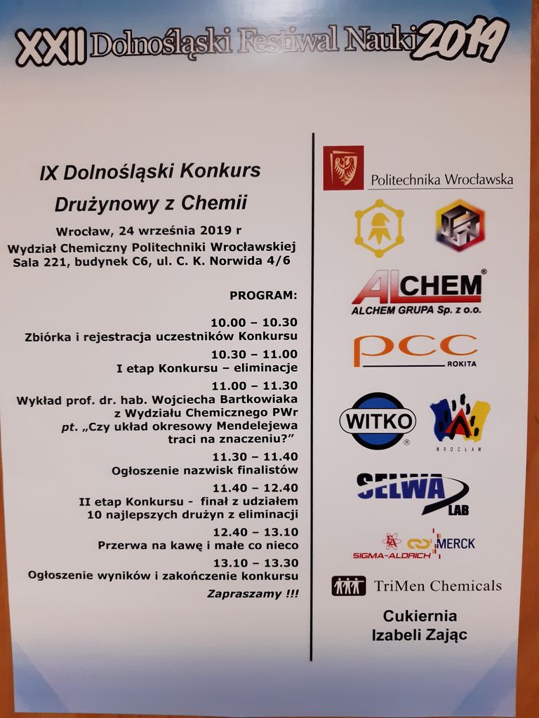 Dnia 06.03.2019 r w X LO we Wrocławiu odbyła się 15 edycja Otwartego Konkursu Fizycznego organizowanego przy wsparciu Uniwersytetu Wrocławskiego i Politechniki. Uczeń naszej szkoły Łukasz Noga zakwalifikował się do dziesiątki finalistów. Finał odbył się 03.04.2019 r.-Łukasz uzyskał na nim 5 miejsce zdobywając indeks studenta Uniwersytetu na wydziale fizyki. |