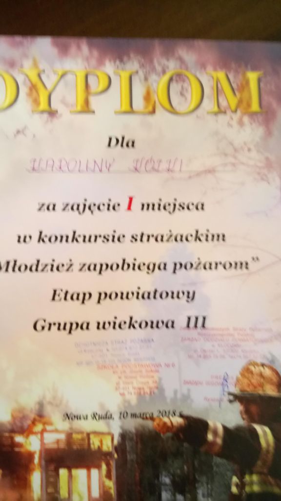 W dniu 10 lutego br. w obiektach Szkoły Podstawowej nr 6 oraz zrewitalizowanym budynku Ochotniczej Straży Pożarnej w Nowej Rudzie - Drogosławiu odbyły się miejsko - gminne zawody "Młodzież zapobiega pożarom". Naszą szkołę reprezentowało pod opieką p. Andrzeja Behana troje uczniów: Karolina Kózka z kl. I b, Natalia Muzyka z II a oraz Adrian Trybus z 2 c. Miło nam poinformować, iż zwycięzcą w pionie szkół ponadgimnazjalnych została Karolina Kózka i ona będzie reprezentować naszą szkołę w etapie powiatowym, który odbędzie się 10 marca. Warto dodać, iż również 1 miejsce drużynowo zajęła nasza szkoła, otrzymując puchar przechodni. Gratulujemy!
