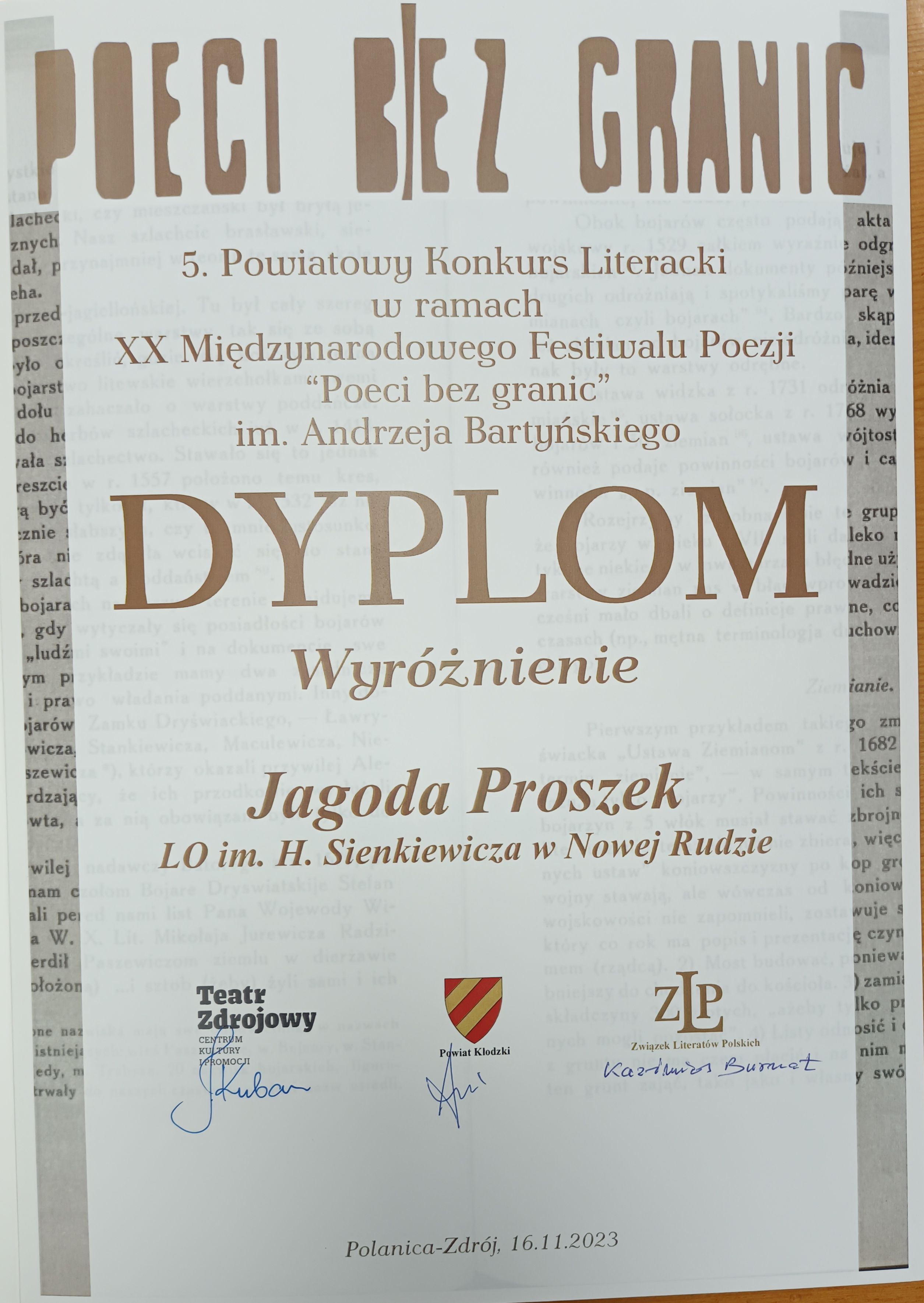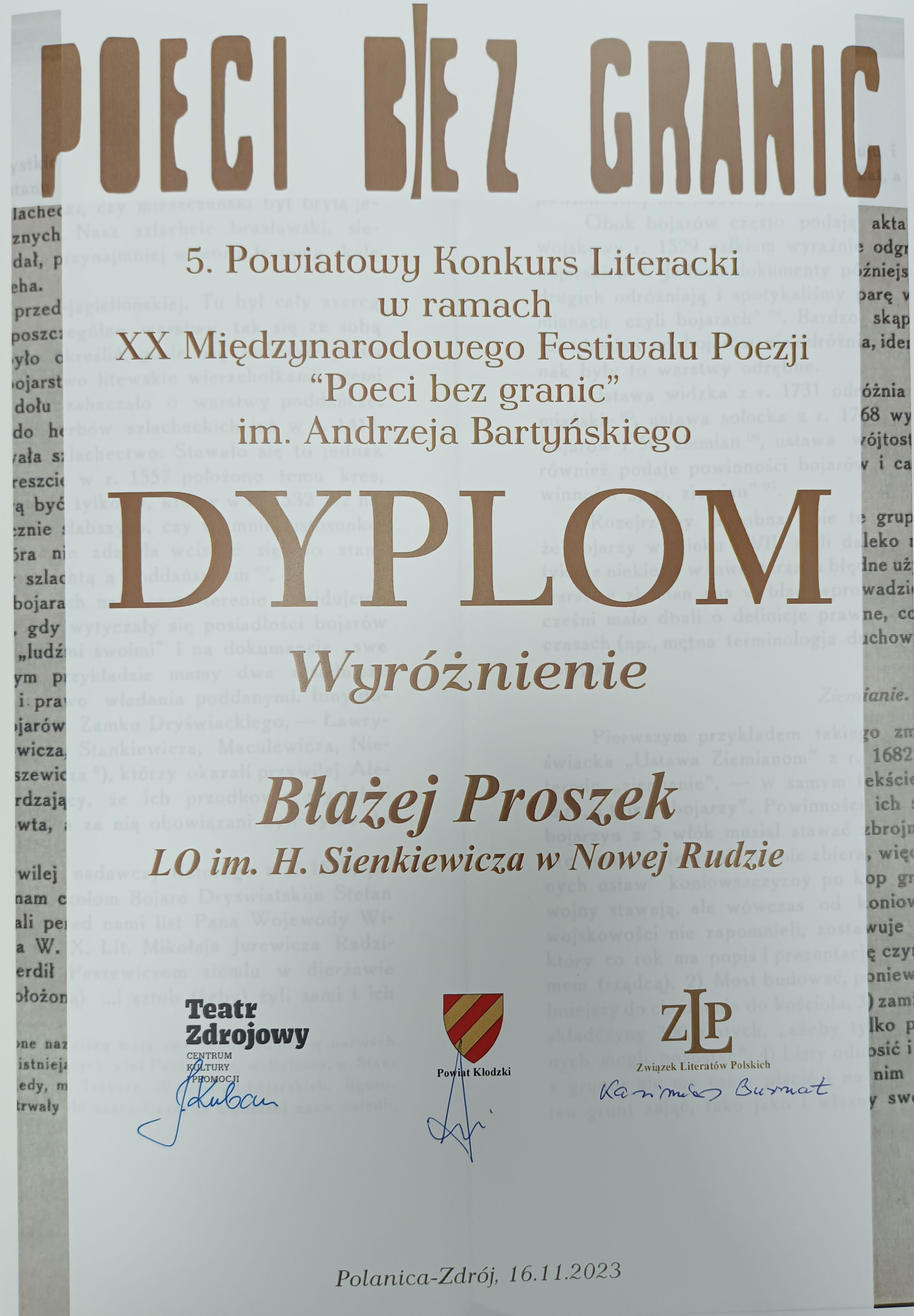 Sukcesy naszych uczniów w Powaitowym Konkursie Literackim |