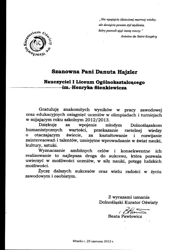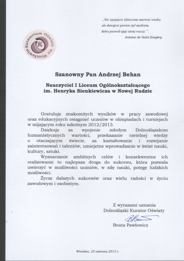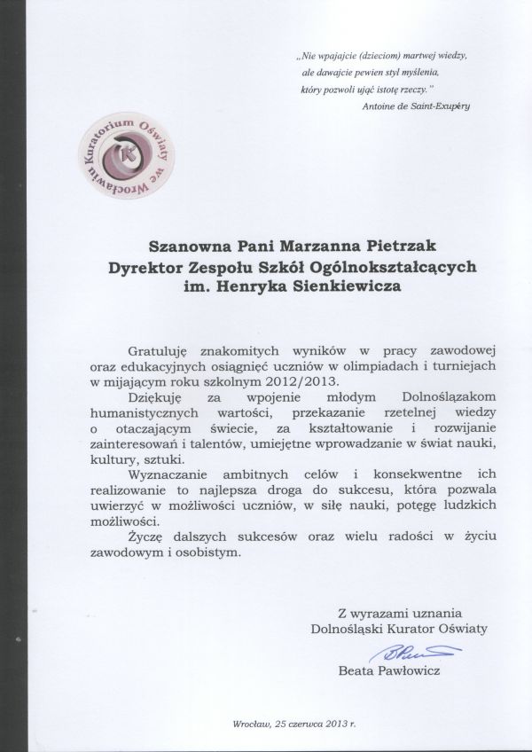 | Wyróżnienia Dolnośląskiego Kuratora Oświaty |