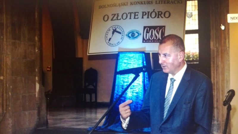 W czwartek, 5 grudnia, w Sali Wielkiej wrocławskiego ratusza odbyła się gala IX Dolnośląskiego Konkursu Literackiego o Laur Złotego Pióra, organizowanego przez Liceum Salezjańskie we Wrocławiu oraz miejscowa redakcję „Gościa Niedzielnego”. Patronat honorowy nad konkursem objęli najważniejsi przedstawiciele duchowieństwa i władzy Dolnego Śląska, w tym także obecny na uroczystości prezydent Wrocławia – Rafał Dutkiewicz. Fundatorem głównej nagrody – Złotego Pióra był prezydent RP – Bronisław Komorowski. Galę uświetnił występ Tomasza Krajewskiego, który wykonał recital piosenek Agnieszki Osieckiej.