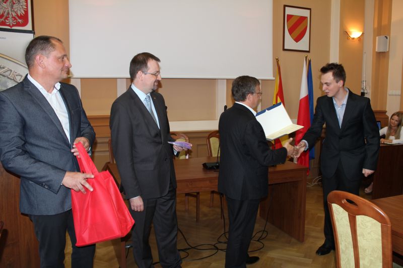 W dniu 18 czerwca 2014 roku odbyło się wręczenie nagród dla uczestników konkursu "Święto Wolności i Demokracji" organizowanego przez Senatora RP Stanisława Jurcewicza i Starostę Kłodzkiego Macieja Awiżenia. Laureatem tego konkursu został nasz uczeń Piotr Sikora z klasy IIe. Gratulujemy! |
