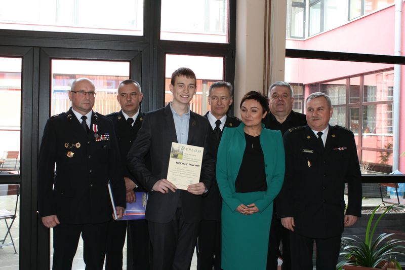 W piątek 17.04. 2015 roku w Miejskim Ośrodku Kultury w Nowej Rudzie odbyły się eliminacje wojewódzkie turnieju "Młodzież zapobiega pożarom". W grupie szkół ponadgimnazjalnych I miejsce zajął uczeń kl. III a Wojciech Pawlina, który będzie reprezentował województwo dolnośląskie, a tym samym i naszą szkołę w ogólnopolskich finałach, które odbędą się w dniach 29 - 31.05. 2015 roku w Polanicy - Zdroju. Serdecznie gratulujemy!