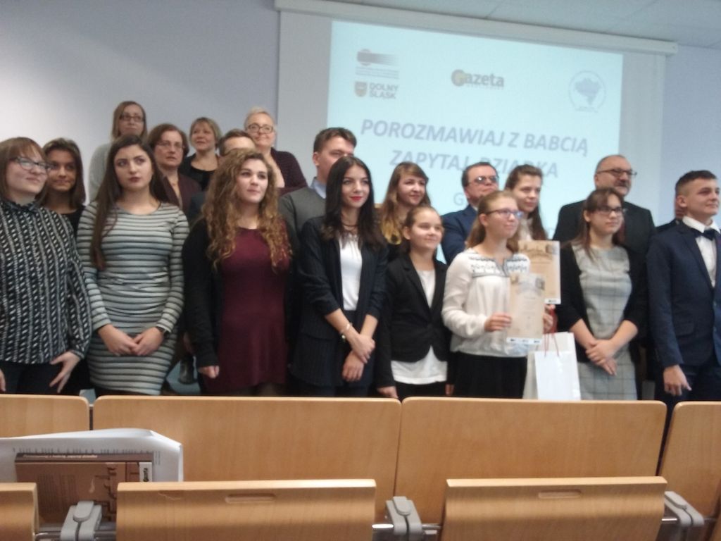 Dnia 05.12.2016 roku w DolnoÅ›lÄ…skim OÅ›rodku Doskonalenia Nauczycieli we WrocÅ‚awiu odbyÅ‚a siÄ™ gala wrÄ™czenia nagród w konkursie historyczno-literackim "Porozmawiaj z babciÄ…, zapytaj dziadka". Uczennica naszej szkoÅ‚y, Martyna Zdrojek, otrzymaÅ‚a nagrodÄ™ z wyróżnieniem. Jej praca zostaÅ‚a umieszczona w unikatowej książce konkursowej. Martynie życzymy dalszych sukcesów literackich! Â