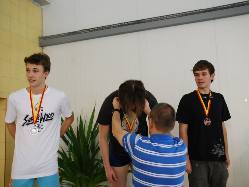 W dniu 6.12.2012r. na krytej pływalni CTS w Nowej Rudzie-Słupcu odbyły się Mistrzostwa Powiatu Kłodzkiego Szkół Ponadgimnazjalnych w pływaniu. W zawodach startowało 117 zawodników z 7 szkół, w tym 42 dziewczyny i 75 chłopców. Możemy być dumni z naszych pływaków zajęli wysokie lokaty. Złote medale otrzymały dwie zawodniczki: Agnieszka Rówińska (styl klasyczny), oraz Weronika Krzuś (style motylkowy). Żadnemu z chłopców niestety nie udało się zdobyć złota. Srebro natomiast otrzymali: Marta Babik (styl grzbietowy), oraz Przemysław Guja (styl dowolny). Brąz wywalczyli: Katarzyna Tatar (styl grzbietowy), oraz Krzysztof Augiewicz (styl grzbietowy). Poza podium znaleźli się: Angelika Książek, Katarzyna Beck, Adam Szarek, Piotr Bisikiewicz, Piotr Ulatowski, oraz Daniel Stukus. Przeprowadzono również rywalizację sztafet, gdzie dziewczęta wywalczyły srebro, a chłopcy brąz. W ogólnej klasyfikacji nasze dziewczęta zajęły I miejsce i otrzymały okazały puchar, natomiast chłopcy zajęli trzecią lokatę. Z racji mikołajek każdy uczestnik cieszył się słodkim poczęstunkiem i miłą atmosferą. BRAWA DLA NASZYCH WSPANIAŁYCH PŁYWAKÓW!