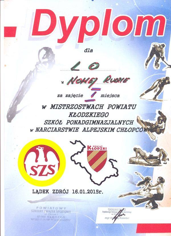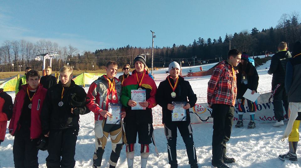 Naszą szkołę reprezentowali: Mateusz Tessmer, Kacper Kochanik i Arkadiusz Ogorzałek. Jak to w sporcie zwykle bywa walka trwała do samego końca. Po pierwszym przejeździe Mateusz przegrywał z pierwszym zawodnikiem o 0,6 sekundy. Arkadiusz był czwarty, a Kacper piąty. Kolejność po drugim przejeździe uległa małej zmianie. W ostateczności spóźnienie jednego skrętu zadecydowało o wyniku końcowym. Nasi chłopcy ostatecznie zajęli: