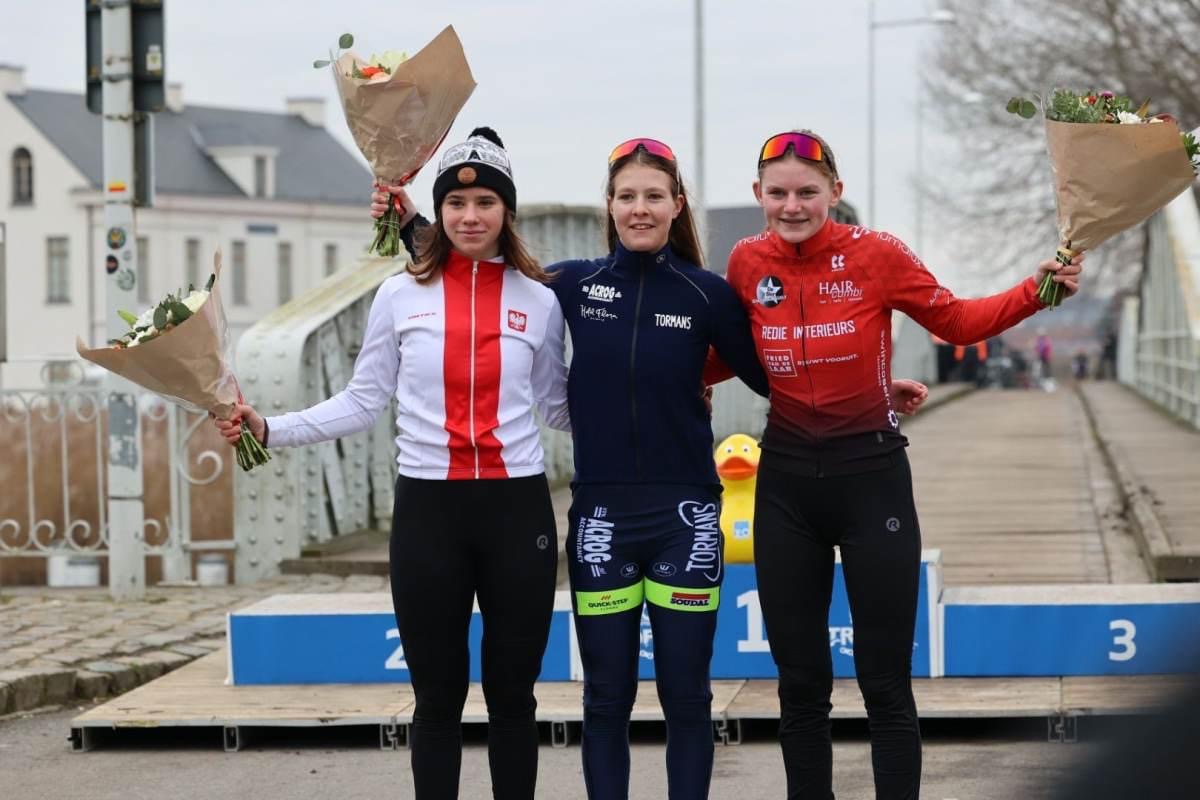 Uczennica naszej szkoły Alicja Matuła z klasy 3b przez okres zimowy systematycznie startowała w wyścigach w kolarstwie przełajowym osiągając następujące wyniki: -04.02.2023r. 18 miejsce UCI World Championships Cyclocross Hoogerheide 2023 UCI CM - Holandia -03.02.2023r. 9 miejsce UCI World Championships Cyclocross Hoogerheide 2023 UCI CM (sztafeta: M. Konwa; Sz. Pomian; M. Mul; A. Matuła; T. Białek; B. Świder) - Holandia -28.01.2023r. 2 miejsce X2O Trofee Hamme - Flandriencross 2023 UCI C1 (Belgia) -15.01.2023r. 3 miejsce Mistrzostwa Polski CX – II Wicemistrz Polski CX – Zielona Góra UCI CN -30.12.2022r. 16 miejsce (WJ) 70 (WE) Exact Cross Loenhout – Azencross UCI C1 (Belgia) -28.12.2022r. 20 miejsce (WJ) 75 (WE) Superprestige Diegem UCI C1 (Belgia) -26.12.2022r. 10 miejsce (WJ) 72 (WE) World Cup CX Gavere UCI CDM (Belgia) -19.12.2022r. 3 miejsce Puchar Europy UEC Cyclo-cross European Cup in Ostrava -30.11.2022r. 3 miejsce (WJ) 11 (WE) Super Puchar Polski BRYKSY CROSS UCI C2 Gościęcin -23.11.2022r. 1 miejsce (WJ) 6 (WE) Puchar Polski OWOCOWY PRZEŁAJ Laskowice Pomorskie -14.11.2022r. 1 miejsce (WJ) 6 (WE) Szczekociny -13.11.2022r. 1 miejsce (WJ) 5 (WE) Koziegłowy Alu, ogromne gratulacje ! Trzymamy kciuki za następne sukcesy!