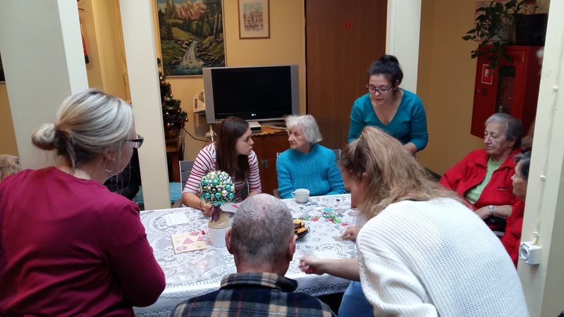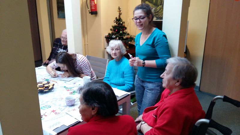 Z okazji zbliżających się Świąt Bożego Narodzenia grupa uczniów ze Szkolnego Klubu Wolontariusza odwiedziła mieszkańców domu opieki „Spokojna Jesień”. Czas upłynął bardzo miło na wspólnym śpiewaniu kolęd oraz na wykonywaniu kartek świątecznych.
