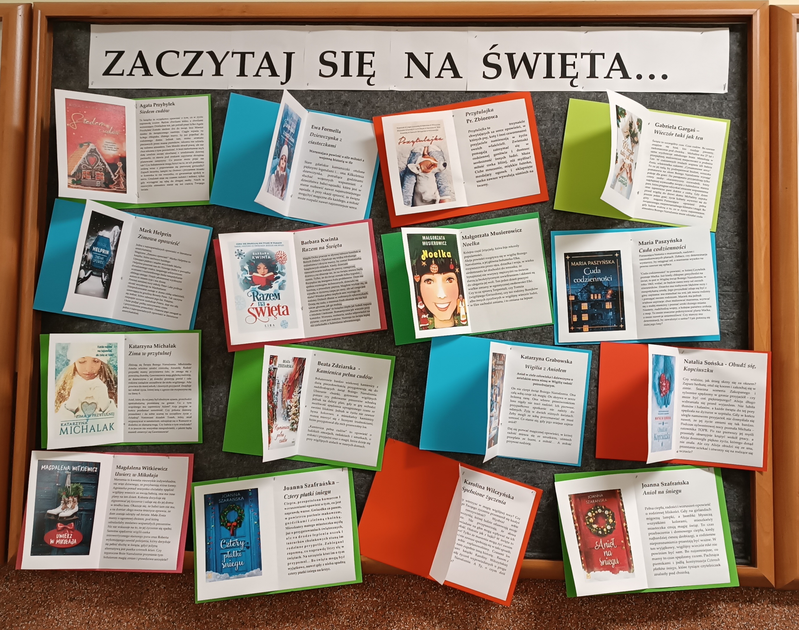 Zbliżające się święta są doskonałą okazją do znalezienia chwili w tym „zabieganym” świecie na dobrą lekturę. W związku z tym biblioteka przygotowała wystawę z propozycjami ciekawych tytułów. Materiały znajdują się na korytarzu szkoły. Dodatkowo zapraszamy po książkę – niespodziankę. Więcej informacji w bibliotece.
