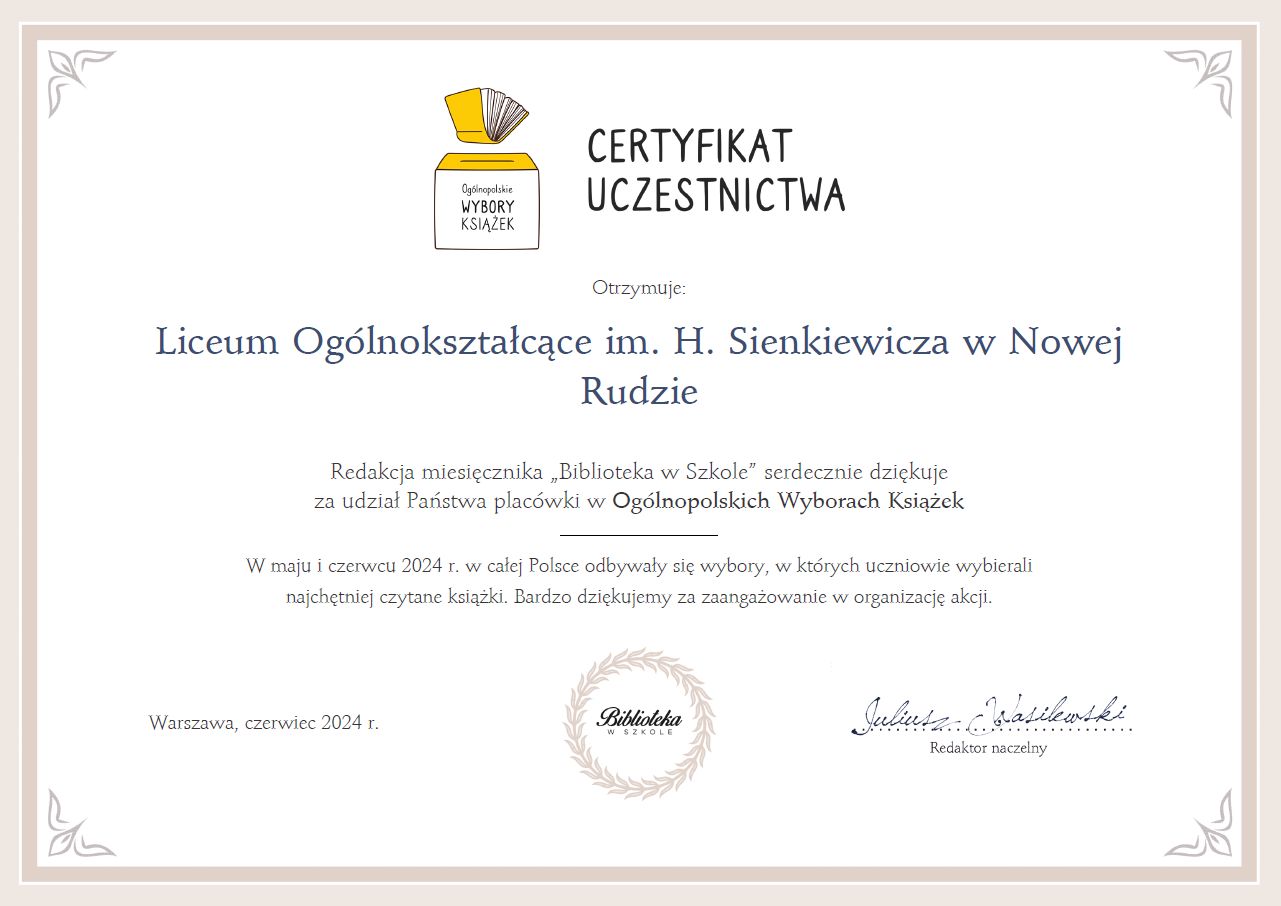 Przypominamy, że niedługo zakończenie akcji czytelniczej „Przeczytam 52 książki w 2023 roku”. Na początku stycznia zapraszamy osoby, które podjęły wyzwanie do biblioteki szkolnej. Zapraszamy także te osoby, które niekoniecznie osiągnęły wynik 52 tytułów lecz przeczytały choćby 25. Przyjdźcie, pochwalcie się waszym wynikiem i pokażcie, że czytanie jest fajne.
