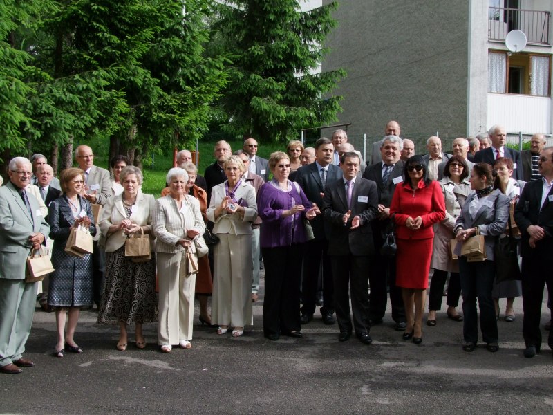 19 czerwca, w sobotę, odbył się VII Zjazd Absolwentów naszej szkoły z okazji 65-lecia istnienia liceum. Uroczystość poprzedzona była wielomiesięcznymi przygotowaniami prowadzonymi przez Komitet Organizacyjny, w którego skład weszli: Dorota Jankowska, Irena Rogowska, Renata Cyman, Magdalena Rydlewska-Majewska, Bożena Bojczuk, Monika Krakowska, Lucyna Strama, Anna Żuchowicz i Andrzej Behan. Jego praca polegała m.in. na pozyskiwaniu sponsorów, do których należy zaliczyć : ZPAS, Urząd Miasta Nowa Ruda, Urząd Gminy Nowa Ruda, p. Kokota vel Kokocińskiego „Usługi poligraficzne”, Księgarnię Millenium p. Marca, p. Teresę Wojdyło. W tegorocznym zjeździe udział wzięło ponad 180 uczestników, absolwentów różnych roczników, przybyłych również zza oceanu, jak np. pani prof. Urszula Kunikiewicz, która od lat mieszka w Kanadzie. Uroczyste spotkanie rozpoczęło się symbolicznym dźwiękiem dzwonka w budynku liceum. Goście zostali powitani przez panią dyrektor Marzannę Pietrzak, a następnie najstarsza absolwentka, pani Zyta Uczkiewicz (rocznik 1947), odsłoniła tablicę pamiątkową, ufundowaną z inicjatywy pana Andrzeja Behana, Przewodniczącego Rady Miasta Nowa Ruda, przez część radnych. Kolejnym punktem uroczystości było zasadzenie pamiątkowego drzewka, a niezbędny do tego celu szpadel znalazł się w rękach byłego wieloletniego dyrektora liceum pana Ryszarda Sonnaka, na co dzień już emeryta, dopieszczającego swój piękny ogród. Po tych oficjalnych momentach na uczestników zjazdu czekały upominki, zwiedzanie szkoły oraz możliwość pogadania i powspominania przy kawie i ciastku w przygotowanej na pierwszym piętrze kawiarence. Warto podkreślić duży wkład pracy, zaangażowanie w organizację uroczystości ze strony uczniów klas pierwszych i drugich, którzy służyli swą pomocą wszystkim gościom sobotniej imprezy. O godzinie 11 w kościele św. Mikołaja w Nowej Rudzie odbyła się msza św. w intencji absolwentów naszego liceum odprawiona przez ks. dziekana Jerzego Kosa i ks. Pawła Wróblewskiego. Następnym ważnym punktem programu obchodów 65-lecia „Sienkiewicza”( jak zwykło się mówić o liceum) była główna uroczystość, która rozpoczęła się o godzinie 12.30 w sali widowiskowej Miejskiego Ośrodka Kultury w Nowej Rudzie, instytucji zawsze życzliwej naszej szkole i wielokrotnie udzielającej nam wsparcia. Na akademii obecni byli również przedstawiciele władz samorządowych (dyrektor Wydziału Oświaty w Starostwie pan Mieczysław Krawczyk), a także lokalnych (Burmistrz Miasta Nowa Ruda pan Tomasz Kiliński oraz Wójt Gminy Nowa Ruda pan Sławomir Karwowski ). Przybyła także pani Monika Wielichowska, posłanka na sejm Rzeczypospolitej Polskiej. Uroczystość poprowadzili uczniowie klasy drugiej: Karolina Radgowska i Emilian Słabicki. Zgodnie z mottem tegorocznego zjazdu: „Trzeba koniecznie pamiętać, skąd się wyszło” (Norwid), w kolejnych przemówieniach podkreślano rolę szkoły w kształtowaniu osobowości młodego człowieka, a także sentyment do lat spędzonych w szkolnej ławie. Burmistrz Tomasz Kiliński oraz wójt Sławomir Karwowski wręczyli na ręce pani dyrektor Marzanny Pietrzak dwa 42-calowe telewizory, gratulując jej jednocześnie jubileuszu liceum, którym kieruje. Na koniec części oficjalnej Przewodniczący Rady Miasta pan Andrzej Behan nadał pośmiertnie tytuły „Zasłużony dla Miasta Nowa Ruda” profesorom liceum im. H. Sienkiewicza: p. Antoniemu Mackiewiczowi, p. Henrykowi Sułkowi i p. Rudolfowi Kolaczkowi oraz p. Ryszardowi Rybce, wiernemu przyjacielowi szkoły. Statuetki odebrali bliscy uhonorowanych osób. Później, zgromadzeni w MOK-u goście mieli okazję wysłuchać programu artystycznego w wykonaniu absolwentów i uczniów liceum, którego scenariusz przygotowała pani Bożena Bojczuk. Wieńcząca całość piosenka „Bal”, z repertuaru Maryli Rodowicz, była swoistym zaproszeniem uczestników spotkania na wieczorny Bal Absolwentów, który miał miejsce w Restauracji „Sportowa” na terenie obiektów CTS w Słupcu. Bawiono się do białego rana i fakt ten chyba dobrze oddaje atmosferę VII Zjazdu, będącego już tylko wspomnieniem. |