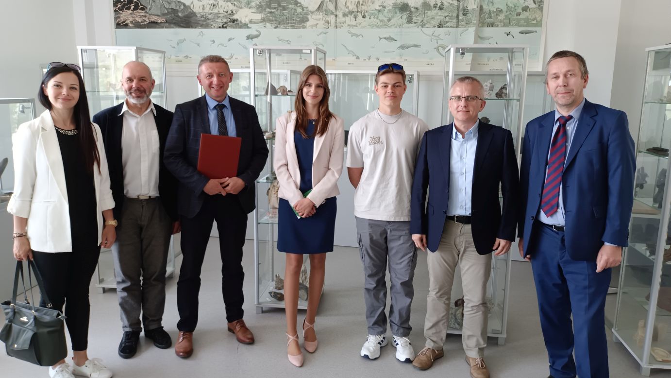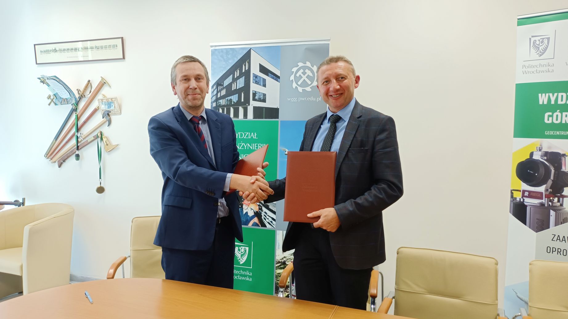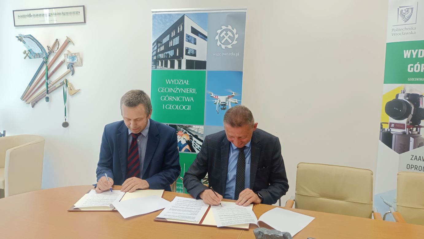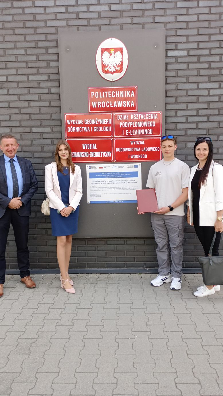 Dnia 5 czerwca 2023r. delegacja z Liceum Ogólnokształcącego w Nowej Rudzie w składzie dyrektor Robert Zynkowski, wicedyrektor Agata Hryciuk oraz uczniowie kl.3A Klaudia Brzyska, Filip Zdrojek udała się do Politechniki Wrocławskiej na Wydział Geoinżynierii, Górnictwa i Geologii w celu podpisania porozumienia. Celem współpracy jest wspieranie przez Politechnikę Wrocławską naszego Liceum poprzez objęcie patronatem klas realizujących program rozszerzony z zakresu matematyki i geografii, pomoc w rozwijaniu zainteresowań i pasji, z tym związanych oraz przygotowanie młodzieży do studiowania na kierunkach oferowanych przez Politechnikę Wrocławską Wydział Geoinżynierii, Górnictwa i Geologii. Porozumienie o sprawowaniu patronatu zostało podpisane przez dziekana wydziału prof. dr hab. inż. Radosława Zimroza oraz dyrektora liceum mgr inż. Roberta Zynkowskiego. Nasz udział w tym wydarzeniu zawdzięczamy dr inż. Tomaszowi Ratajczakowi, wykładowcy i wieloletniemu pracownikowi Politechniki Wrocławskiej. Była to doskonała okazja do zwiedzenia Wydziału, zapoznania z ofertą uczelni oraz przybliżenia badań naukowych jakie prowadzą pracownicy i studenci.