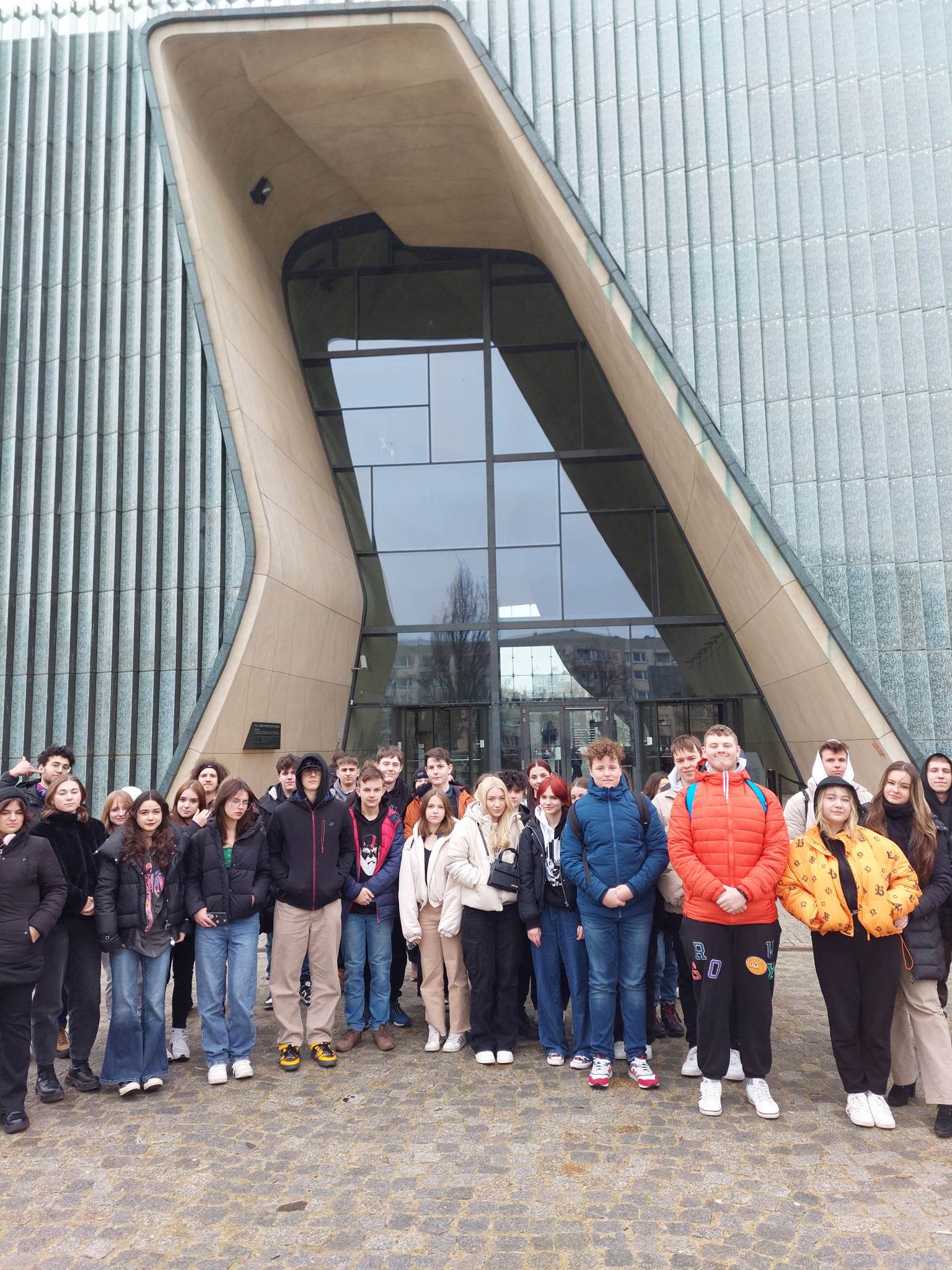 W sobotę 11 marca uczniowie naszej szkoły uczestniczyli w jednodniowej wycieczce do Warszawy, której głównym celem było zwiedzenie Muzeum Żydów Polskich Polin. Wyjazd zorganizowany przez Panów Andrzeja Behana oraz Rafała Gałczyńskiego odbył się w 80 rocznicę wybuchu powstania w getcie warszawskim oraz oraz 10 rocznicę istnienia tego muzeum. Z racji tych rocznic muzeum zaoferowało możliwość jego zwiedzenia dla młodzieży szkolnej w symbolicznej cenie 1 zł ( normalna cena 45 zł, ulgowa 35zł ). Muzeum , zresztą świetnie zorganizowane i wyposażone jest prawdziwą lekcją historii dotyczącej społeczeństwa żydowskiego żyjącego wspólnie od tysiąca lat z ludnością polską i dzielącą z nią dobre i złe losy.