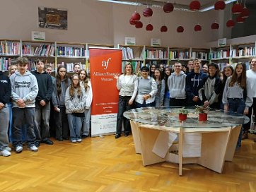 5 grudnia 2025 r. uczniowie klas 1a, 1b, 2a, 2b i 3c noworudzkiego liceum mieli okazję uczestniczyć w zajęciach w bibliotece wrocławskiego ośrodka Alliance Française. W tym roku, poszerzali swoją wiedzę na temat regionów Francji. Oprócz ogólnych wiadomości dotyczących podziału administracyjnego, położenia geograficznego regionów, można było poznać ciekawostki historyczne, herby, legendy, tradycyjne dania i zwyczaje kultywowane w każdym z omawianych miejsc. Nie zabrakło też okazji do konwersacji po francusku. Na początku, wszystkich przybyłych gości powitała serdecznie w tym języku, pani Grażyna Sójka, Dyrektor Alliance Française we Wrocławiu. Nasi licealiści przedstawiali się i opowiadali o swoich zainteresowaniach. Nieco onieśmieleni, później radzili sobie całkiem nieźle nawet w dość trudnych zadaniach, które wymagały rozumienia wypowiedzi po francusku. Warto podkreślić, że nasze francuskie spotkania w Alliance Française, zainicjowane przez panią Renatę Sinicką, odbywają się już od kilku lat, przez co stały się szkolną tradycją. To właśnie tutaj, nasza młodzież ucząca się języka francuskiego ma okazję doskonalić umiejętności , a także przystępować do egzaminu językowego DELF, którego celem jest zdobycie certyfikatu językowego.