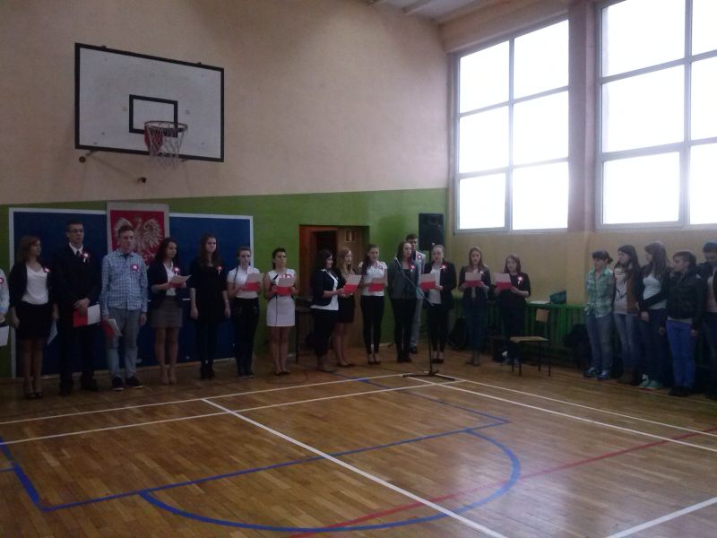 Cała społeczność szkolna miała okazję uczestniczyć w niezwykłej lekcji historii, wsłuchując się z uwaga w słowa polskich pieśni patriotycznych oraz poznając historię państwa i narodu.