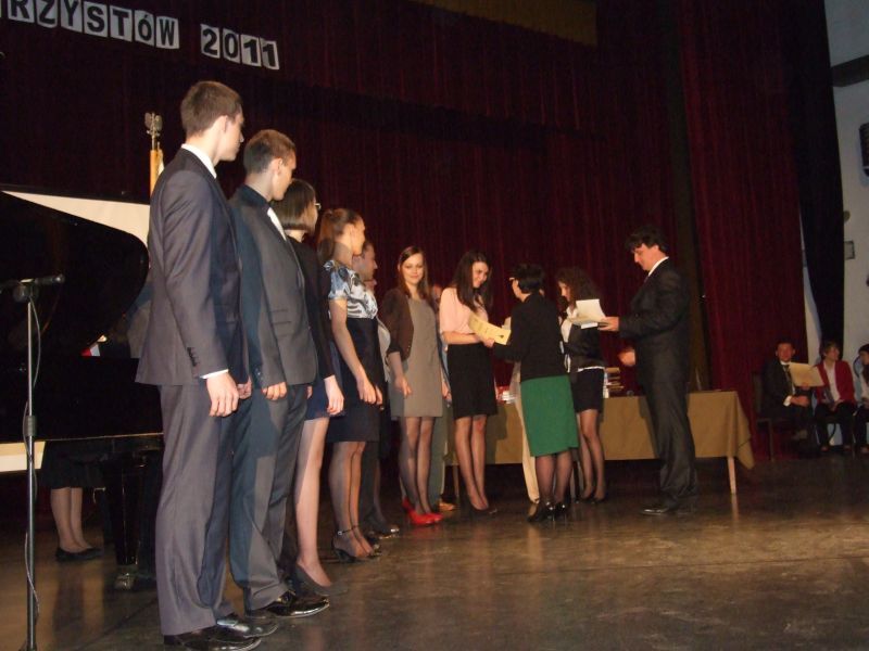 Dnia 29 kwietnia 2011 roku w sali kinowej MOK-u odbyło się uroczyste zakończenie roku dla kas trzecich. Wychowawcy klas wręczyli najlepszym uczniom nagrody i świadectwa z paskiem, a ich rodzicom listy gratulacyjne. Nagrodzono również zasłuzonych dla szkoły sportowców i działaczy samorządu szkolnego i innych utalentowanych uczniów. Program artystyczny przygotowały klasy 2a i 2e pod czujnym okiem pani mgr Lucyny Stramy i mgr Renaty Sinickiej. Uczestniczyli w nim grając, śpiewając i deklanując wiersze: Anna Cieślińska, Michał Czosnyka, Magdalena Krzysiak, Małgorzata Mania, Patryk Szulc, Radosław Widurek, Jakub Żak. Po raz ostatni zaśpiewali dla nas finałową piosenkę uczniowie klas tzrecich Alma Cywka, Paulina Boczkowska, Monika Michalska, Piotr Sapieja.