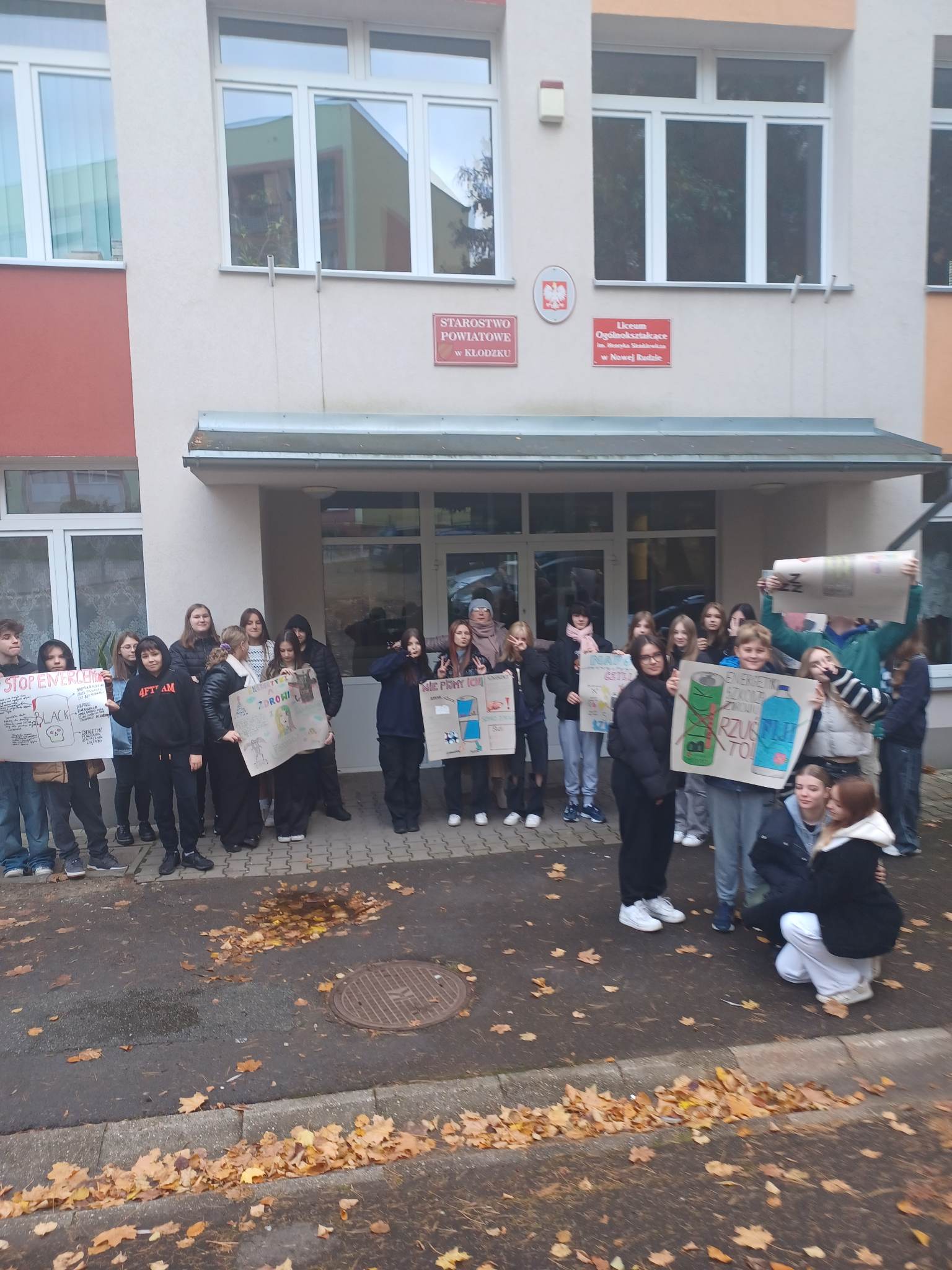 07.11.2023r. klasa 1 c wraz z wychowawczynią p. J. Stasiewicz i p. A. Krywejko wybrała się na happening, który miał zamanifestować sprzeciw wobec używania napojów energetyzujących. Wszyscy uczniowie zaangażowali się w zaprojektowanie i wykonanie oryginalnych plakatów związanych z wybrana formą sprzeciwu. Nie zabrakło nam wigoru i emocji podczas przemarszu ulicami naszego miasta. Punktem docelowym był Rynek, na którym nie zabrakło okrzyków negujących używania napojów energetyzujących. To pierwsze, ale nie ostatnie tego typu wyjście.